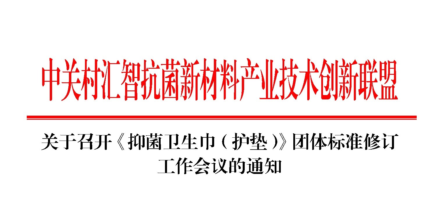 關(guān)于召開《抑菌衛(wèi)生巾(護(hù)墊)》團體標(biāo)準(zhǔn)修訂工作會議的通知